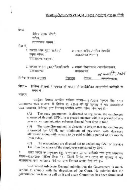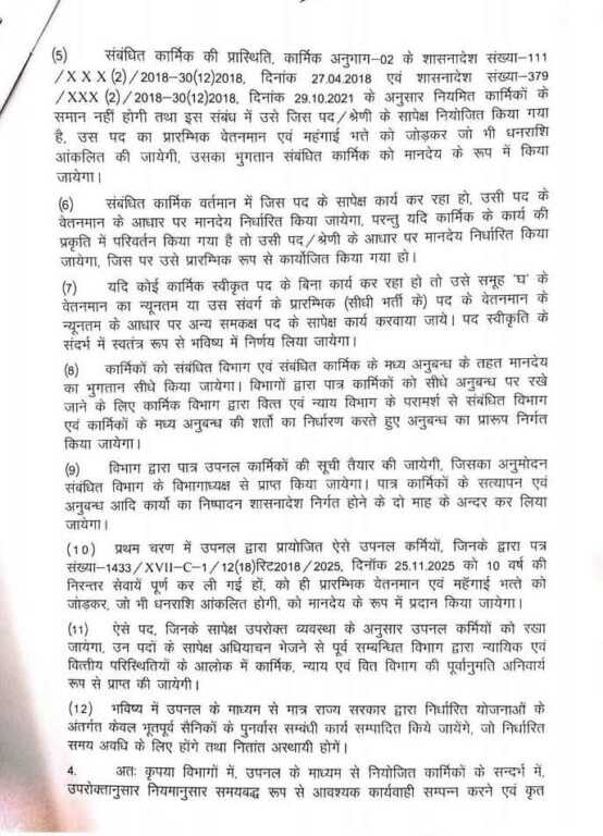 4. अतः कृपया विभागों में, उपनल के माध्यम से नियोजित कार्मिकों के सन्दर्भ में, उपरोक्तानुसार नियमानुसार समयबद्ध रूप से आवश्यक कार्यवाही सम्पन्न करने एवं