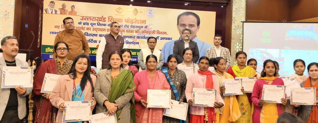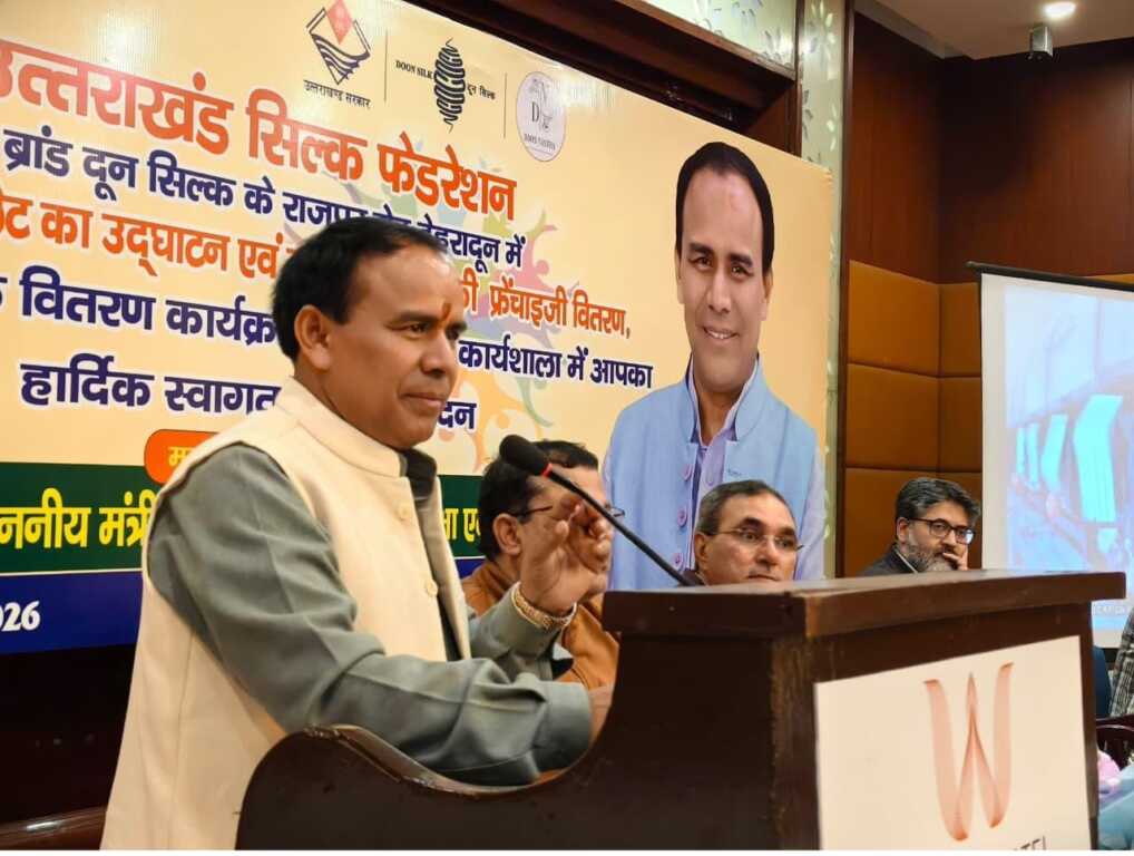 उत्तराखंड को-ऑपरेटिव रेशम फेडरेशन द्वारा प्रदेश के रेशम बुनकरों को चार राज्यों में अध्ययन भ्रमण पर भेजा जाएगा, ताकि वे आधुनिक तकनीक, नवीन डिज़ाइन और उन्नत रेशम उत्पादन प्रक्रियाओं का प्रत्यक्ष अनुभव प्राप्त कर सकें। यह घोषणा माननीय सहकारिता मंत्री डॉ. धन सिंह रावत ने देहरादून स्थित राजपुर रोड पर दून सिल्क के चौथे रिटेल आउटलेट के शुभारंभ अवसर पर की।