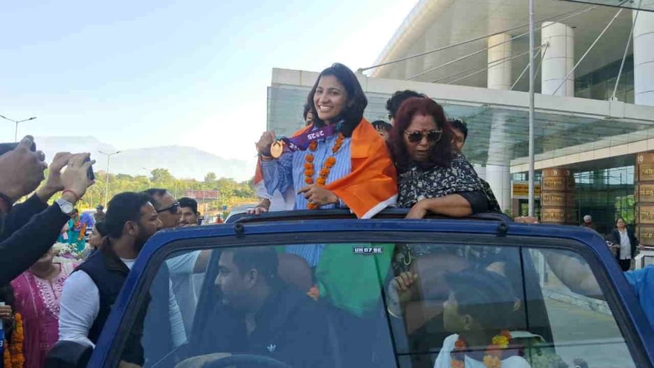 दून एयरपोर्ट पर स्नेह राणा का ढोल नगाड़ों से स्वागत, सीएम और प्रधानमंत्री से करेंगी मुलाकात