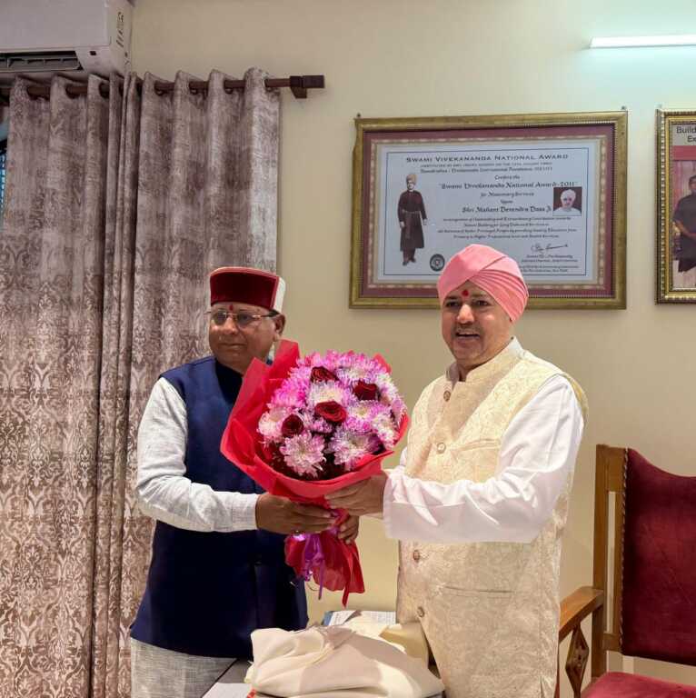 समाज कल्याण मंन्त्री उत्तराखंड खजान दास ने देहरादून में आज झंडा जी दरबार साहिब में माथा टेककर महंत श्री देवेंद्र दास महाराज जी से शिष्टाचार भेंट कर आशीर्वाद प्राप्त किया तथा दरबार साहिब में देश एंव प्रदेश की तरक्की के लिये आराधना की।