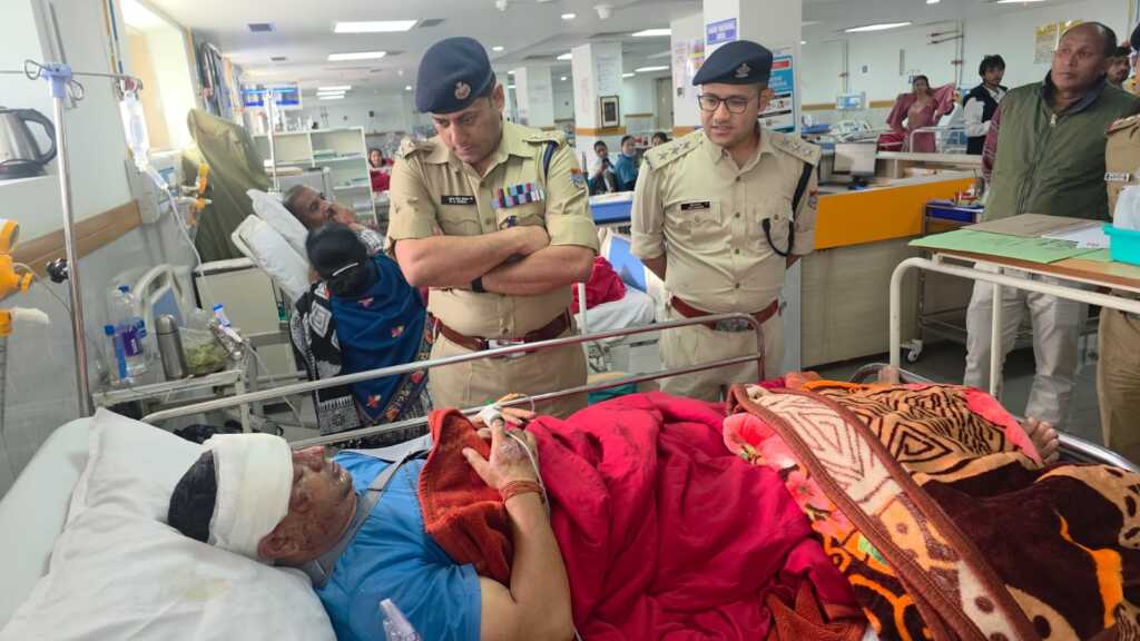 *डाक्टरों से घायल पुलिस कर्मी के स्वास्थय की जानकारी प्राप्त कर उन्हें बेहतर से बेहतर इलाज उपलब्ध कराने हेतु उपस्थित अधिकारियों को दिये निर्देश।*