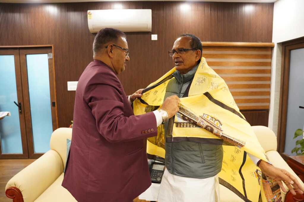 *केंद्रीय कृषि एवं ग्रामीण विकास मंत्री शिवराज सिंह चौहान से शिष्टाचार भेंट करते सूबे के कृषि मंत्री गणेश जोशी*