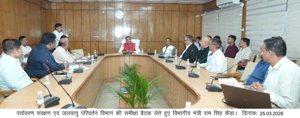 प्रदेश के पर्यावरण संरक्षण मंत्री राम सिंह कैड़ा ने विधानसभा स्थित सभागार कक्ष में विभागीय अधिकारियों के साथ समीक्षा बैठक की।