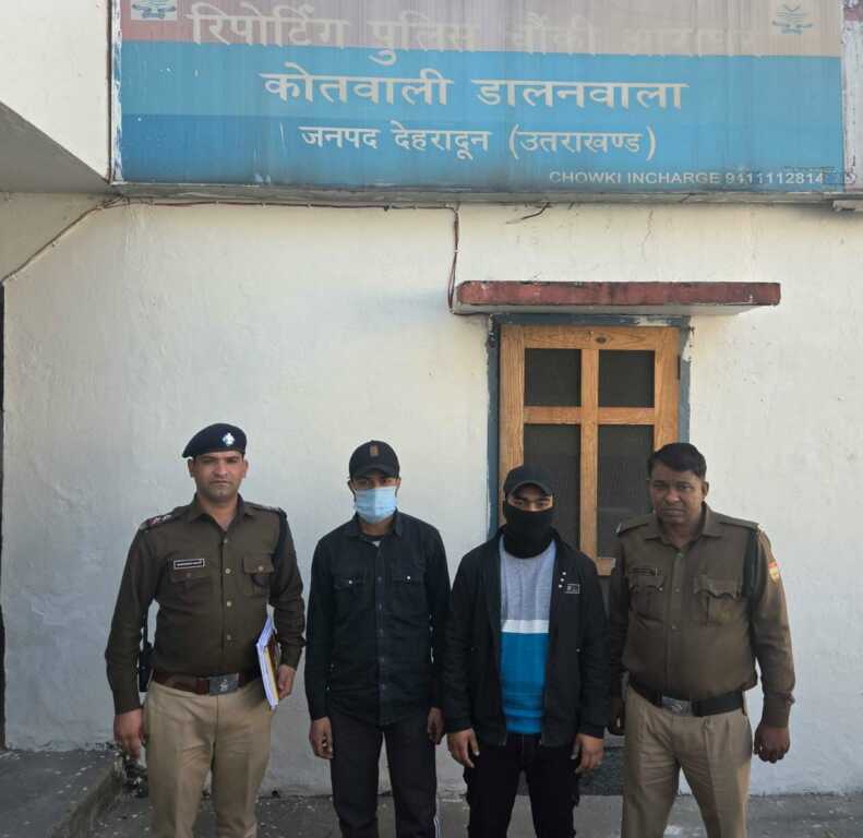 वादी श्री हेम भट्ट स्व० जगदीश चन्द्र भट्ट, निवासी- शान्ति विहार, हरिद्धार बाईपास रोड, देहरादून ने स्कूटी सवार तीन अज्ञात व्यक्तियो द्वारा दिनाँक 06/02/2026 को रेसकोर्स सडक पर मुडते समय उनकी स्कूटी रोककर उनके साथ गाली गलौज, मारपीट व जान से मारने की धमकी देने के संबंध में दी गयी तहरीर के आधार पर मु०अ०सं०- 26/26, धारा 126(2),115(2),352,351(3) BNS का अभियोग पंजीकृत किया गया, जिसमे पुलिस द्वारा त्वरित कार्यवाही करते हुए दिनांक 07/02/2026 को मुखबिर की सूचना पर घटना में शामिल 02 अभियुक्तो 1- मो० कैफ पुत्र समर अहमद निवासी गांधी रोड, थाना कोतवाली, जनपद देहरादून, उम्र 21 वर्ष तथा 2- मो० ताबिश पुत्र रियाज अहमद निवासी गांधी रोड, थाना कोतवाली, देहरादून, उम्र 20 वर्ष को पूछताछ हेतु हिरासत में लेकर चौकी लाया गया।