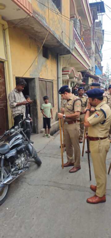 इसी क्रम में आज दिनांक: 04-04-26 को क्षेत्राधिकारी नगर के नेतृत्व में बसन्त विहार क्षेत्र में कांवली गांव, सत्तोवाला घाटी, गोविंदगढ़ में पुलिस टीम द्वारा फ्लैग मार्च किया गया। फ्लैग मार्च के दौरान संदिग्धो से सख्ती से पूछताछ करते हुए 05 संदिग्ध को हिरासत मे लिया गया। फ्लैग मार्च के दौरान मुखबिर द्वारा सूचना दी की साधु राम इंटर कॉलेज में कुछ लोग हार जीत की बाजी लगाते हुए जुआ खेल रहे हैं प्राप्त सूचना पर पुलिस टीम द्वारा साधु राम इंटर कॉलेज के अंदर स्कूल के प्रशासनिक भवन के पीछे से हार जीत की बाजी लगाते हुए 03 अभियुक्तों 01: अंकित कुमार 02: टिंकू गुप्ता तथा 03: अरुण कुमार को ताश के 52 पत्ते एवं फड़ एवं नगदी 1300/= के गिरफ्तार किया गया। अभियुक्तों के विरूद्ध धारा 13 जुआ अधिनियम के अंतर्गत अभियोग पंजीकृत किया गया। इसके अतिरिक्त अभियान के दौरान किरायेदारों का सत्यापन न कराने वाले 02 भवन स्वामियों का 83 पुलिस एक्ट में चालान कर 20 हजार रू0 का जुर्माना अध्यारोपित किया गया। साथ ही संदिग्ध रूप से घूमते पाये जाने पर 05 व्यक्तियों का 81 पुलिस एक्ट में चालान कर 2500 रू0 का जुर्माना किया गया। यातायात के नियमों का उल्लघनं करने वाले 08 वाहनों के विरूद्ध एम0वी0 एक्ट के तहत कार्यवाही करते हुए 01 वाहन को सीज, 02 के मां0 न्यायालय के चालान तथा 05 वाहनों के नगद चालान कर 2500 रू0 का संयोजन शुल्क वसूला गया।