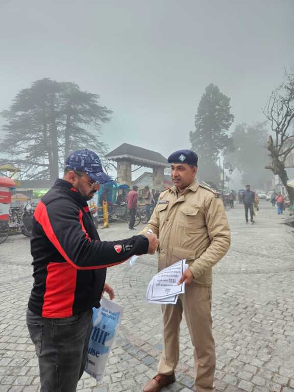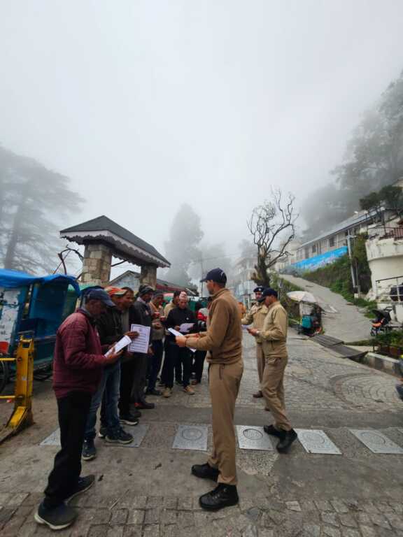 इसी क्रम में आज दिनांक 14-10-25 को, दून पुलिस द्वारा कोतवाली मसूरी क्षेत्रान्तर्गत माल रोड, झूला घर आदि क्षेत्रों में आमजनमानस तथा पर्यटकों को साइबर अपराधों के प्रति जागरूक करने हेतु जनजागरूकता अभियान चलाया गया।