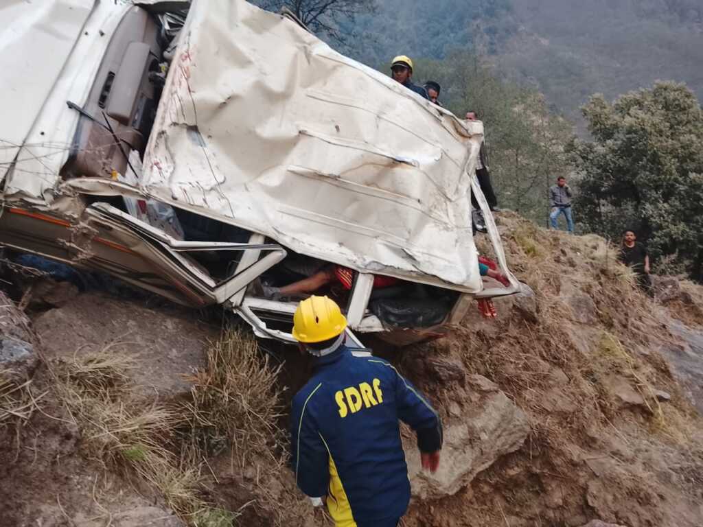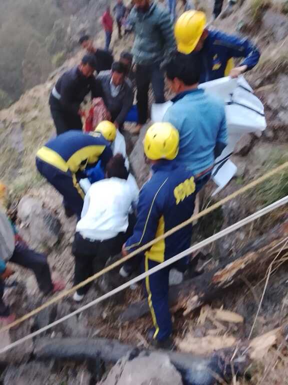 SDRF टीम के घटनास्थल पर पहुंचने से पूर्व ही स्थानीय लोगों एवं जिला पुलिस की सहायता से 05 घायलों को खाई से निकालकर उपचार हेतु अस्पताल भेज दिया गया था। इसके उपरांत SDRF टीम द्वारा दुर्घटनाग्रस्त वाहन तक पहुंच बनाकर 02 मृतकों के शवों को खाई से निकालकर रोड हेड तक लाया गया तथा आगे की कार्यवाही हेतु जिला पुलिस के सुपुर्द किया गया।