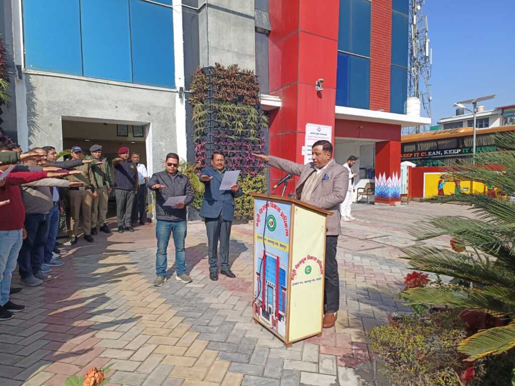 देहरादून । मसूरी–देहरादून विकास प्राधिकरण (मसूरी देहरादून विकास प्राधिकरण) में आज 25 जनवरी 2026 को मनाए जाने वाले 16वें राष्ट्रीय मतदाता दिवस के उपलक्ष्य में एक गरिमामय शपथ कार्यक्रम का आयोजन किया गया। कार्यक्रम में प्राधिकरण के उपाध्यक्ष बंशीधर तिवारी ने एमडीडीए के समस्त अधिकारियों एवं कर्मचारियों को मतदाता शपथ दिलाई। इस अवसर पर सचिव मोहन सिंह बर्निया सहित विभाग के वरिष्ठ अधिकारी व कर्मचारी उपस्थित रहे।