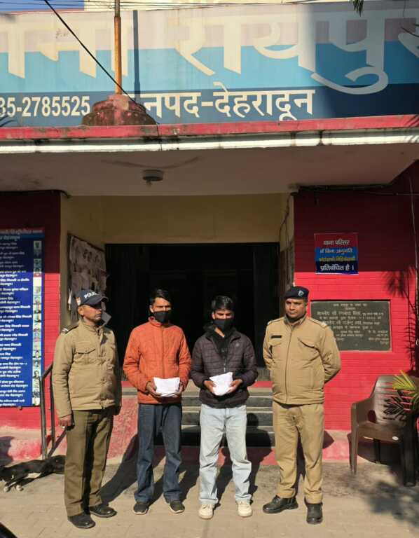 इसी क्रम मे थाना रायपुर पर गठित पुलिस टीम द्वारा दिनांक 26-12-2025 को चैकिंग के दौरान मालदेवता के पास से मुखबिर की सूचना पर 02 अभियुक्तों 1- हरदयाल सिंह पुत्र चक्रसिंह तथा 2- मनोज सिंह पुत्र वीरेंद्र सिंह को 734 ग्राम चरस के साथ गिरफ्तार किया गया । अभियुक्तों के विरुद्ध थाना रायपुर पर धारा 8/20/29 एनडीपीएस एक्ट के अन्तर्गत अभियोग पंजीकृत किया गया । पूछताछ के दौरान अभियुक्तों द्वारा बताया गया कि वे पहाडों से उक्त चरस को स्थानीय नशेडियों से थोडी-थोडी मात्रा में सस्ते दामों में खरीदकर लाये थे। जिसे वो देहरादून तथा आस-पास के नशेडियों को महंगे दामों में बेचकर भारी मुनाफा कमाने की फिराक में थे, इससे पूर्व ही दून पुलिस टीम द्वारा उन्हें गिरफ्तार कर लिया गया।