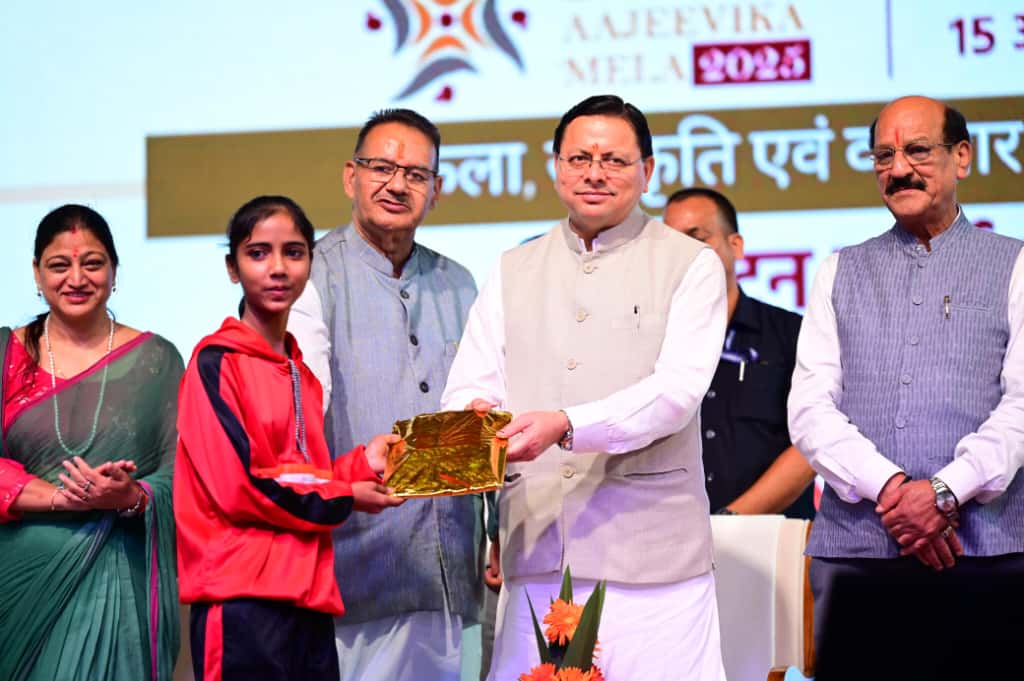 मुख्यमंत्री श्री पुष्कर सिंह धामी ने ऋषिकेश में आयोजित ’’सरस आजीविका मेले’’ में राष्ट्रीय ग्रामीण आजीविका मिशन के सी.एल.एफ. हेतु 1.20 करोड़ रुपये की 12 आर्थिक गतिविधियों का लोकार्पण किया | इसके साथ ही मुख्यमंत्री ने 10 अन्य सी.एल.एफ. के लिए 1 करोड़ रुपये की प्रस्तावित आर्थिक गतिविधियों का शिलान्यास भी किया । उन्होंने आज Rising Tehri – Physics Wala Online Coaching Class का भी लोकार्पण किया गया है। इस कोचिंग क्लास में अब युवा जेईई और नीट आदि की प्रवेश परीक्षाओं की तैयारी अपने गाँव-घर में रहते हुए भी कर सकेंगे।