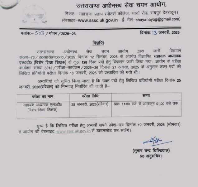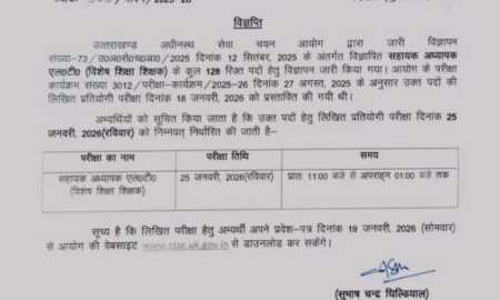 उत्तराखंड अधीनस्थ सेवा चयन आयोग ने दिनांक 13 जनवरी 2026 को सहायक अध्यापक एल...