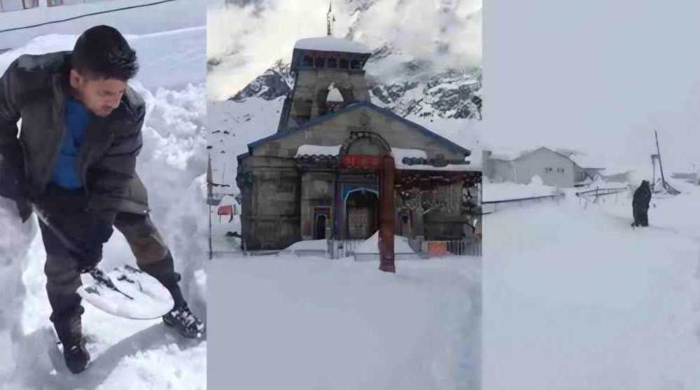 बर्फबारी के बाद सफेद चादर से ढकी केदार घाटी, बैरकों से बर्फ साफ करने...