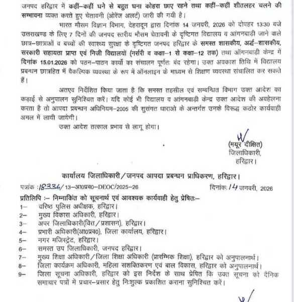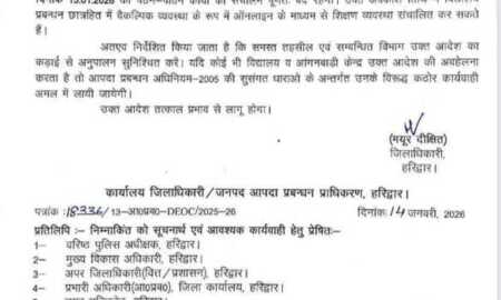 भारत मौसम विज्ञान विभाग, देहरादून द्वारा दिनांक 14 जनवरी, 2026 को दोपहर 13:30 बजे...