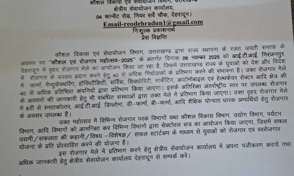*रजत जयंती पर 06 नवंबर को आईटीआई निरंजनपुर मे लगेगा वृहद रोजगार मेला।*...