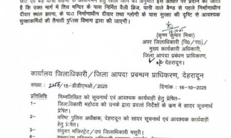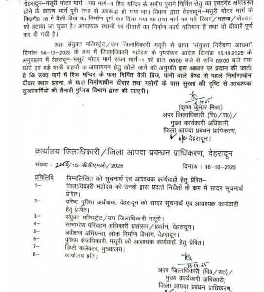 संयुक्त मजिस्ट्रेट/उप जिलाधिकारी मसूरी द्वारा अग्रसारित “संयुक्त निरीक्षण आख्या” दिनांक 14-10-2025 के अनुसार, “दिनांक...