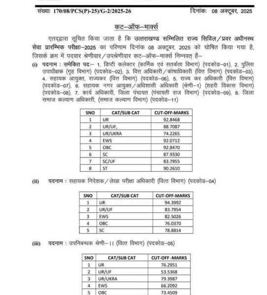 एतद्वारा सूचित किया जाता है कि उत्तराखण्ड सम्मिलित राज्य सिविल / प्रवर अधीनस्थ सेवा...