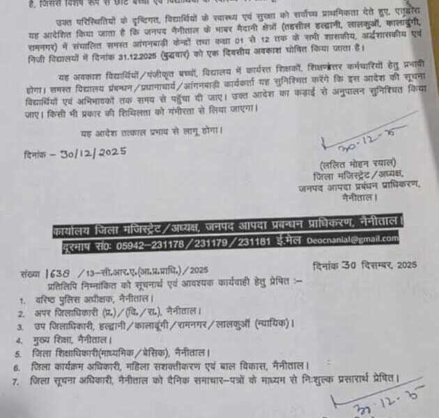 Big breaking :-31 दिसंबर को हरिद्वार में रहेंगे सभी स्कूल और आंगनबाड़ी केंद्र बंद।