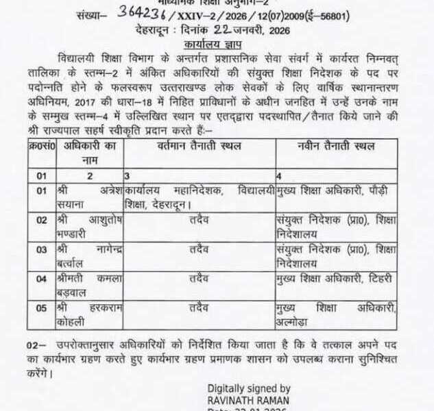 शिक्षा विभाग में अधिकारियों का प्रमोशन, नई तैनाती भी मिली