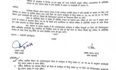 प्रमुख सचिव स्तर पर परिषद के साथ हुई बैठक में लिए गए निर्णयों पर...