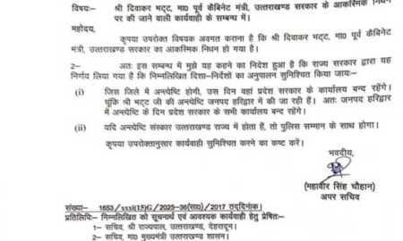 कृपया उपरोक्त विषयक अवगत कराना है कि श्री दिवाकर भट्ट, मा० पूर्व कैबिनेट मंत्री, उत्तराखण्ड सरकार का आकस्मिक निधन हो गया है।...