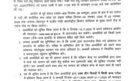 उत्तराखण्ड अधीनस्थ सेवा चयन आयोग के द्वारा स्नातक स्तरीय पदों (विभिन्न विभागों हेतु) की लिखित परीक्षा दिनांक 31 दिसम्बर, 2023 को आयोजित...